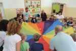 W ramach innowacji "Mamo, tato pobaw się ze mną" klasa I c spędziła popołudnie na wspólnych tańcach, pląsach i zabawach z chustą animacyjną. Dzieci razem z rodzicami rozwiązywały zagadki dotyczące jesieni, uczyły się pracować z instrukcją. Podsumowaniem spotkania było malowanie na folii przepięknych pejzaży jesiennych, które można podziwiać na oknach naszej sali.