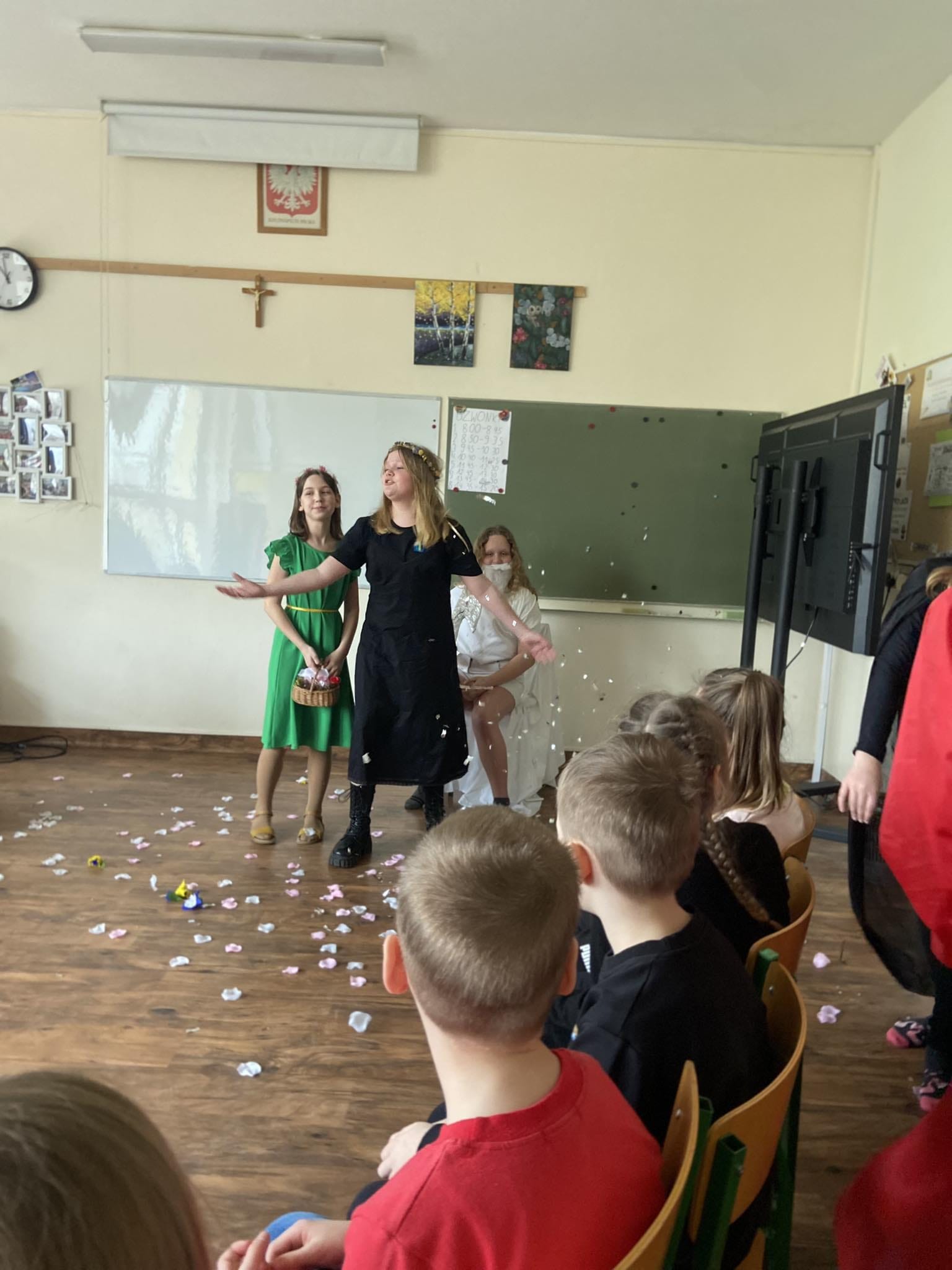 Po zakończeniu zajęć uczniowie wracali do swojej sali z uśmiechami na twarzach i głowami pełnymi nowych, intrygujących informacji. Spotkanie klasy piątej i pierwszej, nie tylko dostarczyło wielu niezapomnianych wrażeń podczas teatralnych uniesień, ale także zainspirowało uczniów do dalszego odkrywania tajemniczego świata mitologii oraz do dzielenia się swoją pasją z innymi. To właśnie takie wydarzenia pokazują, jak ważne jest otwarcie się na nowe doświadczenia.