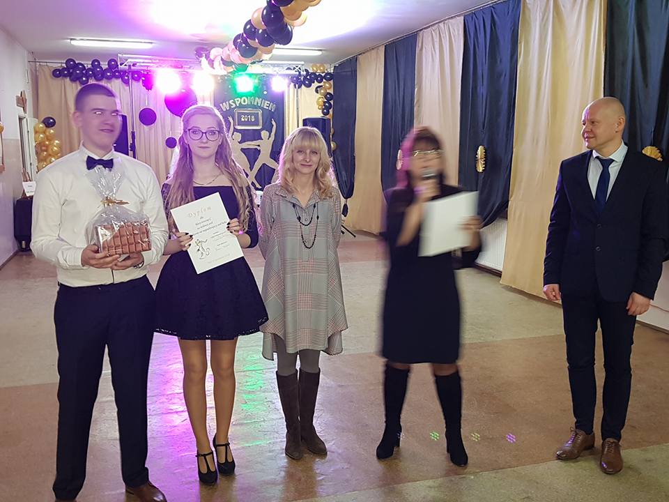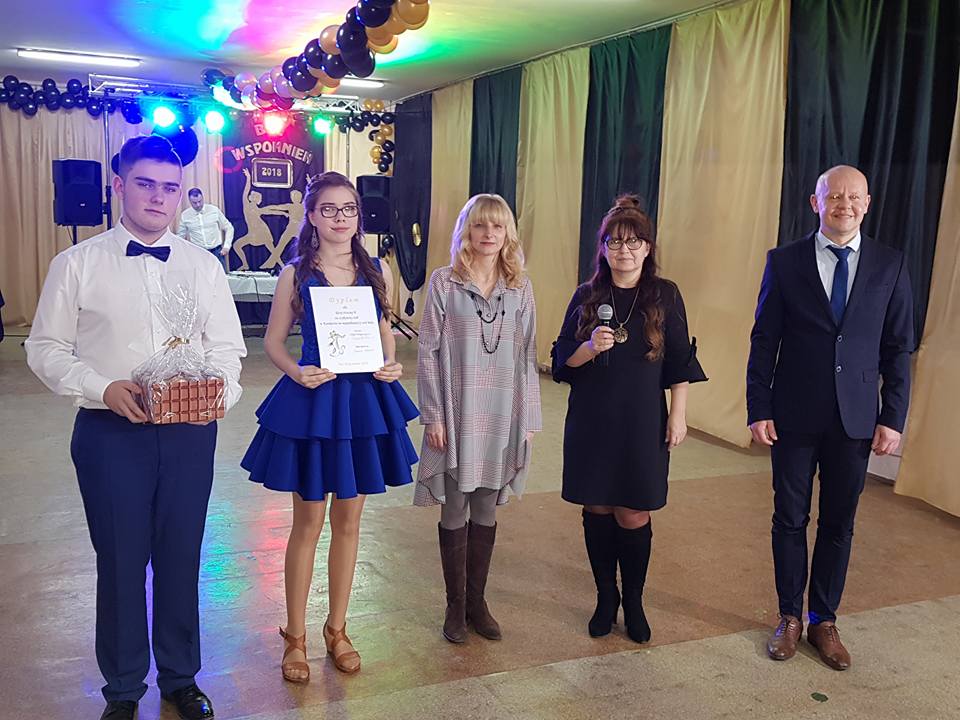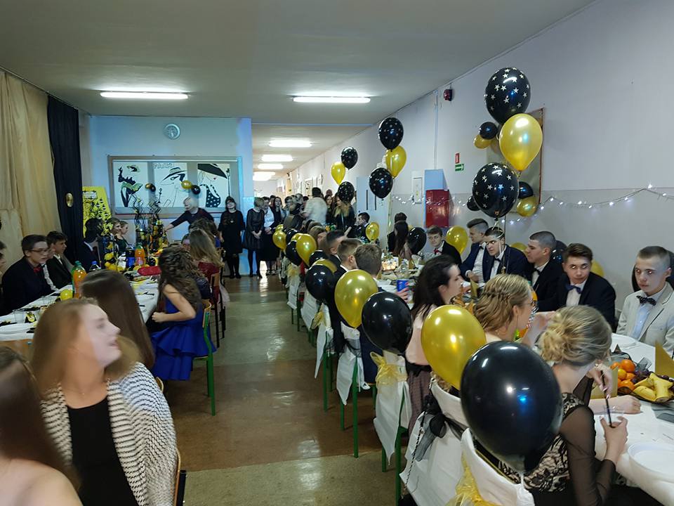 W sobotę, 3 lutego 2018 roku w naszej szkole odbył się Bal Wspomnień. Bohaterami tego wieczoru byli uczniowie klas trzecich - piękne dziewczęta w kolorowych sukienkach i przystojni chłopcy w eleganckich garniturach. Zaczęło się tradycyjnie polonezem, a potem zabawa w rytm przebojów starych i nowych. W trakcie wieczoru wybrano króla i królową balu. Królową została Natalia Klimczak a królem - Kacper Miastkowski. Szczególne podziękowania należą się pani Iwonie Pawlaczyk za piękną dekorację, pani Joannie Stawowej-Sternad za choreografie poloneza oraz Rodzicom zaangażowanym w organizację balu. Ten jedyny w swoim rodzaju wieczór z pewnością zostanie na długo w pamięci naszych uczniów.