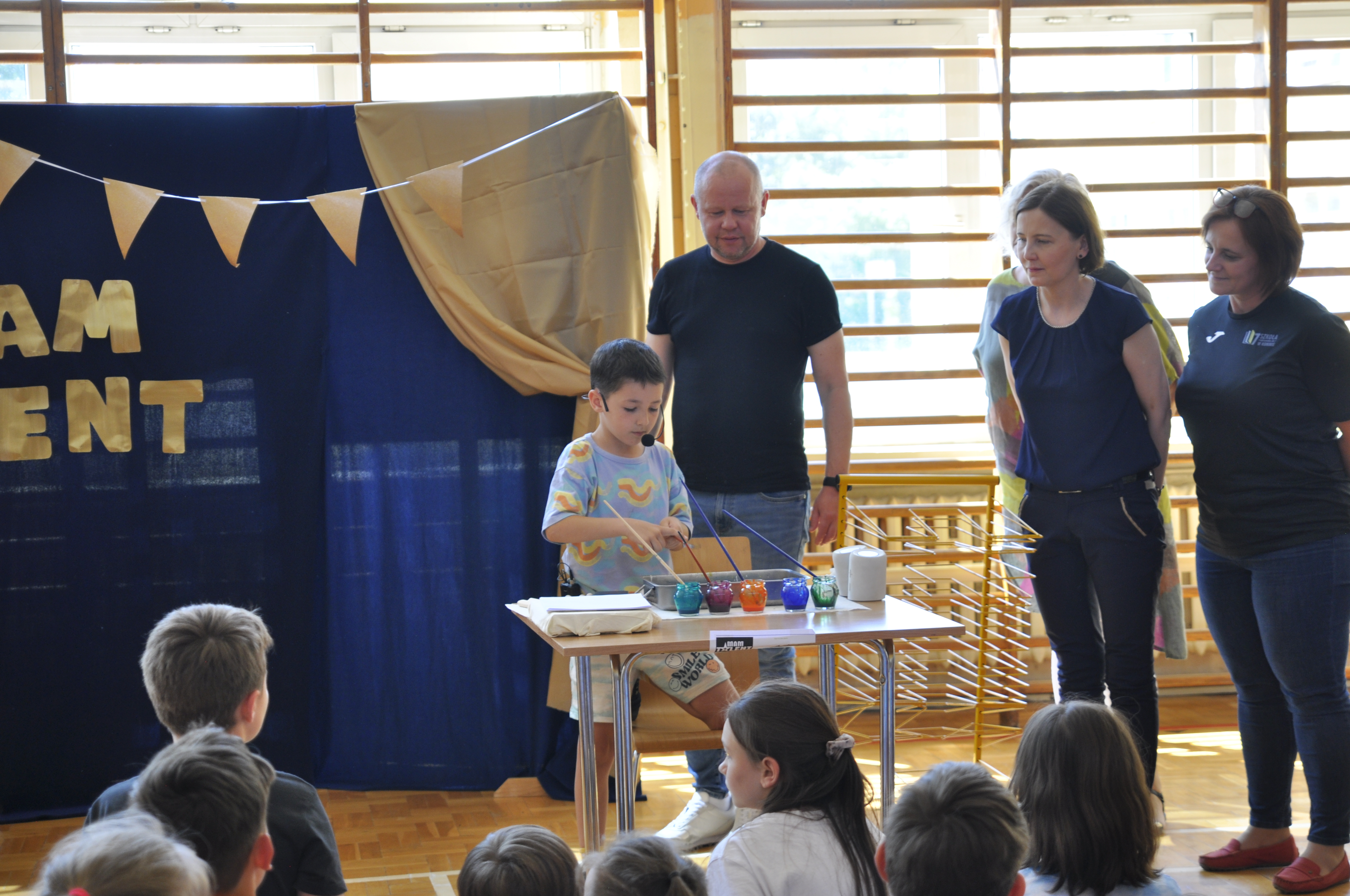 Młodzi artyści walczyli z tremą, ale entuzjazm publiczności dodawał im skrzydeł i wszystkie prezentacje wspaniale się udały. Widzieliśmy skomplikowane układy choreograficzne, pokazy walki, słuchaliśmy recytacji, piosenek, gry na instrumentach, podziwialiśmy miniwystawy plastyczne, mieliśmy okazję obejrzeć pokaz gry w szachy, malowania na wodzie oraz wiele innych. Nasi koledzy wykazali się mnóstwem umiejętności, trudno było więc publiczności i jurorom wybrać te najbardziej niezwykłe.
