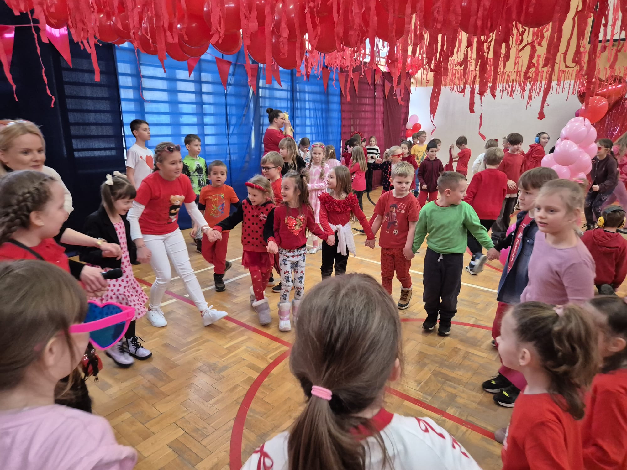 Było to wyjątkowe spotkanie, które połączyło najmłodszych we wspólnej zabawie, tańcu i integracji. Uczniowie oraz przedszkolaki stworzyli niezwykle ciepłą, pełną życzliwości walentynkową atmosferę.