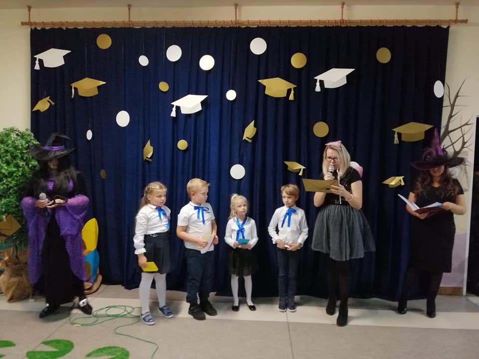 28 października pierwszoklasiści spotkali się na szkolnym korytarzu, aby złożyć ślubowanie i stać się pełnoprawnymi członkami naszej SIÓDEMKOWEJ społeczności. Niewiele brakowało, aby do pasowania na ucznia w ogóle nie doszło. W trakcie części artystycznej Baba Jaga porwała Dyrektora i postanowiła oddać go smokowi żarłokowi w darze. Pierwszoklasiści stanęli na wysokości zadania i, rozwiązując zadania Baby Jagi, uratowali pana Dyrektora. Dzieci ślubowały być dobrymi uczniami, szanować swoich kolegów, rodziców i nauczycieli. Ślubowali również Rodzice. Przyrzekli kochać, wspierać i słuchać uważnie, co pociechy do nich mówią. Po części oficjalnej nadszedł czas na Bal Pierwszoklasisty. Był słodki poczęstunek oraz wspaniała zabawa w rytmie muzyki.