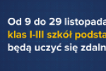 W związku z Rozporządzeniem Ministra Edukacji i Nauki z dnia 5 listopada 2020 r. zmieniającym rozporządzenie w sprawie czasowego ograniczenia funkcjonowania jednostek systemu oświaty w związku z zapobieganiem, przeciwdziałaniem i zwalczaniem COVID-19, w porozumieniu z organem prowadzącym informuję, że od dnia 9 listopada 2020 r. do dnia 29 listopada 2020 r. ogranicza się funkcjonowanie szkół podstawowych dla dzieci i młodzieży w zakresie dotyczącym klas I–VIII.