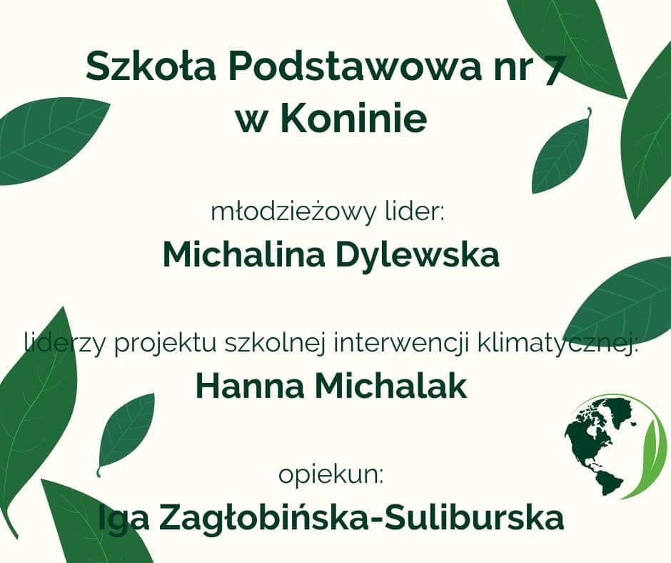 SIÓDEMKA aktywnie włącza się we wszelkiego rodzaju inicjatywy związane z ochroną środowiska i poprawą klimatu oraz ,,klimatu" do życia. Nie mogło nas więc zabraknąć podczas Klimatycznego Sejmiku Samorządów Uczniowskich, który odbył się 24 kwietnia w ,,Oskardzie". Delegacja ,,Siódemki" w składzie: Michalina Dylewska, Oliwia Robak, Gabriela Młyńczyk i Julia Andruszczak, wyposażona w projekt szkolnej interwencji klimatycznej, wyruszyła na Klimatyczny Sejmik Samorządów Uczniowskich szkół podstawowych i ponadpodstawowych, pt. „ROBIMY KLIMAT POD KLIMAT” - spotkanie inicjowane przez Młodych Ambasadorów Klimatu ze Stowarzyszenia M-LAB oraz samorząd Miasta Konina.