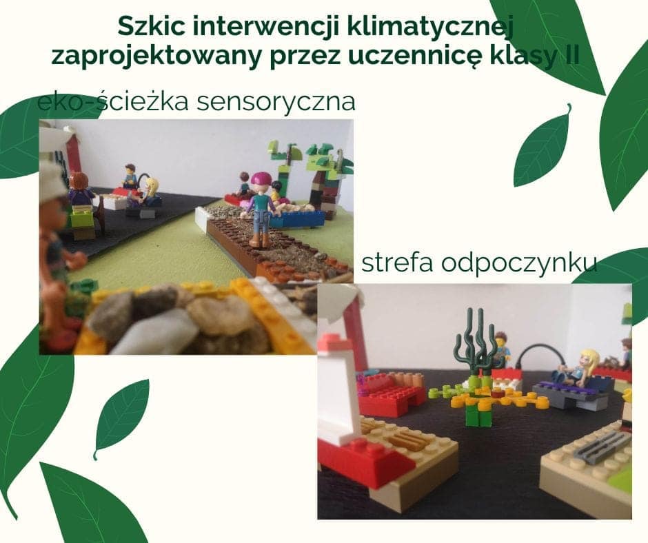 A projekt jest niezwykle ciekawy, bo chcemy stworzyć na szkolnym boisku ekologiczne miejsce do wypoczynku, które powstanie z drewna z odzysku. To jednak nie wszystko, bo zaraz obok utworzymy ekościeżkę sensoryczną, do zbudowania której wykorzystamy bioodpady. Zadrzewiamy także nasze najbliższe otoczenie młodym lasem. Będzie wspaniale! Oczami wyobraźni widzimy już wypoczywających uczniów w otoczeniu przyrody, a naszych młodszych kolegów korzystających z ekościeżki.