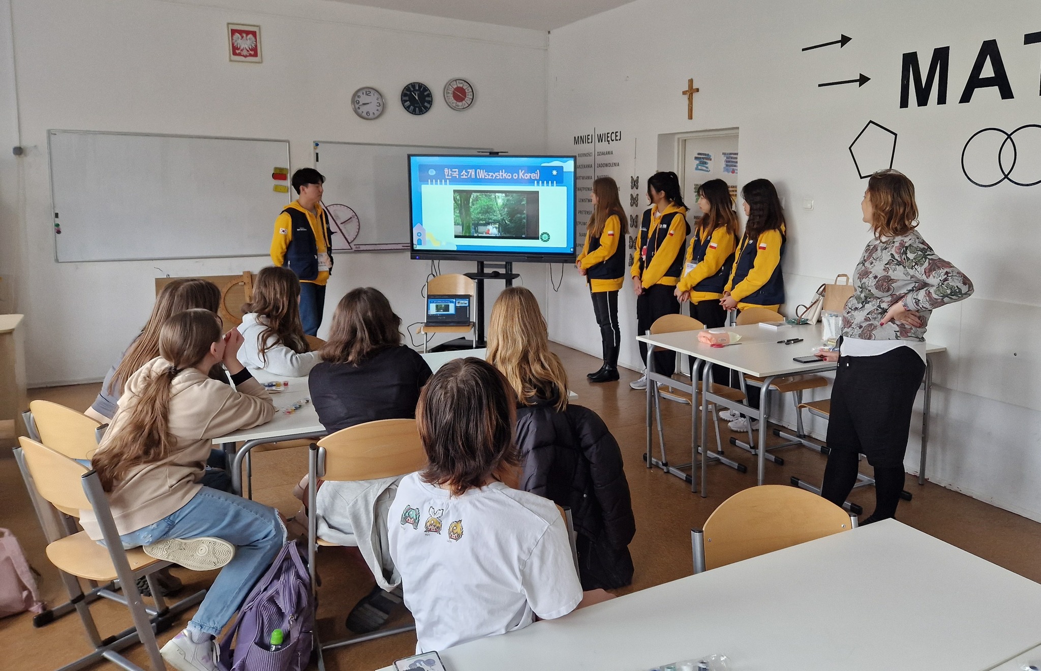 Goście spotkali się z uczniami klas IV-VII, opowiedzieli o swojej kulturze i tradycji, przeprowadzili warsztaty pisania po koreańsku. Wzięliśmy również udział w pokazie taekwondo, popisów tanecznych k-pop’u. Wysłuchaliśmy muzyki granej na tradycyjnym instrumencie haegeum.