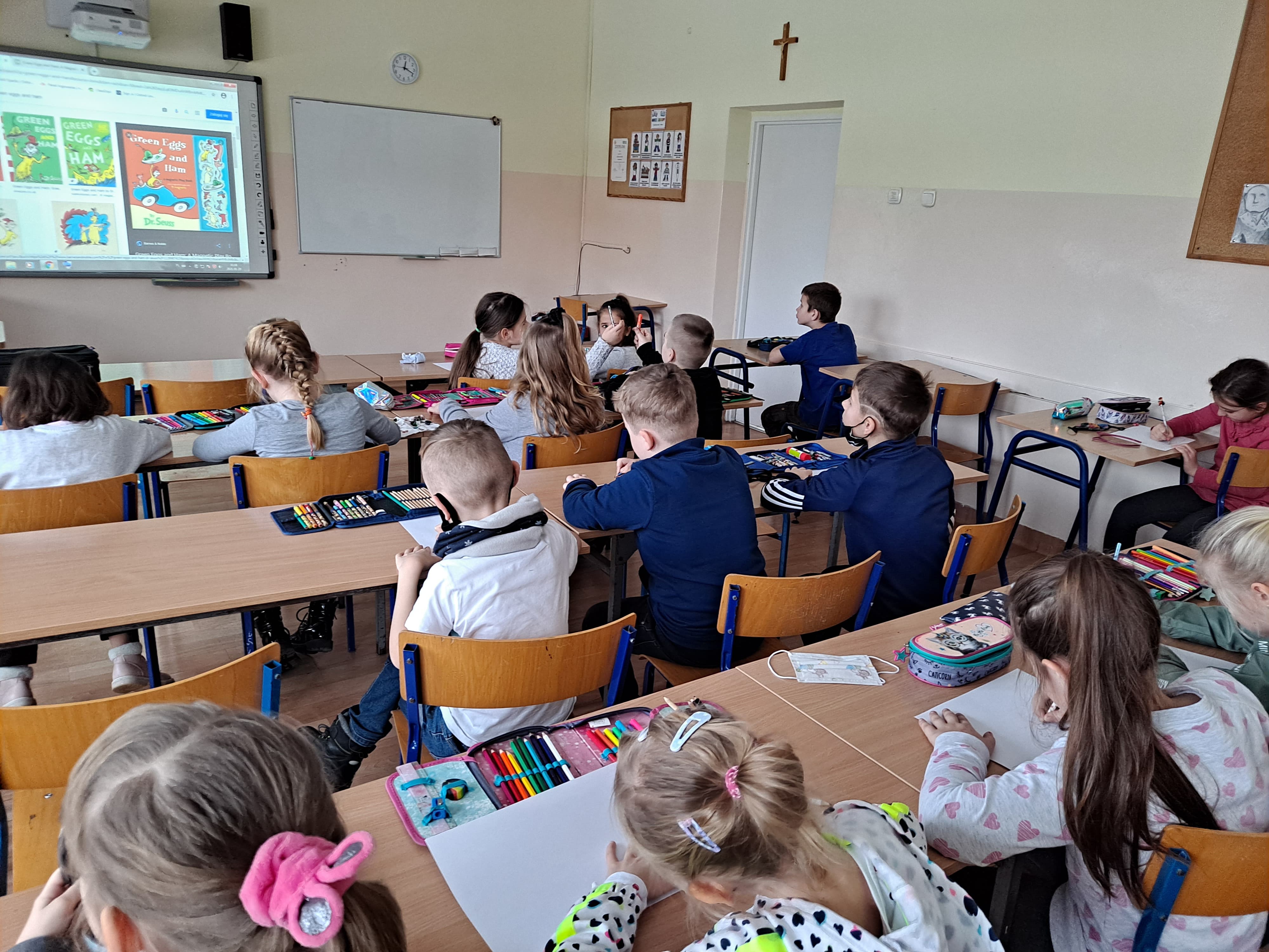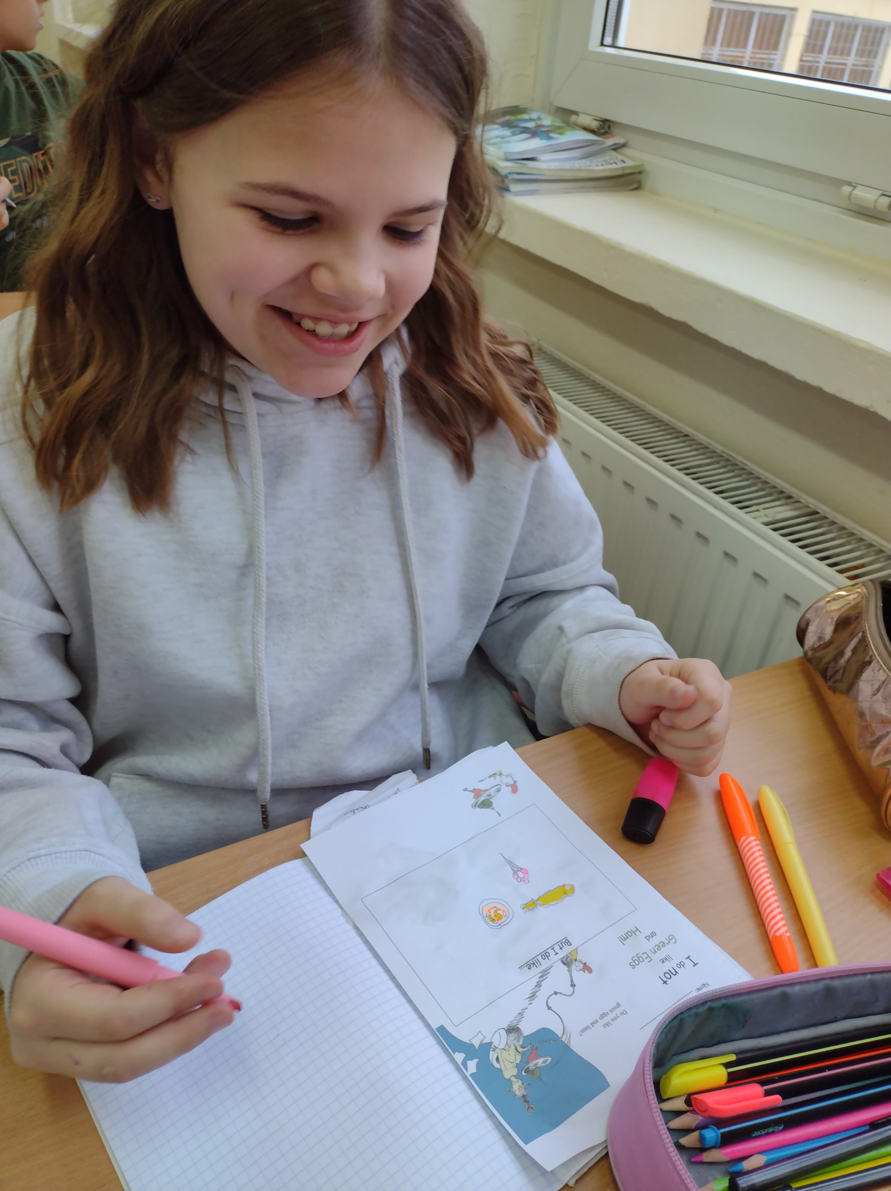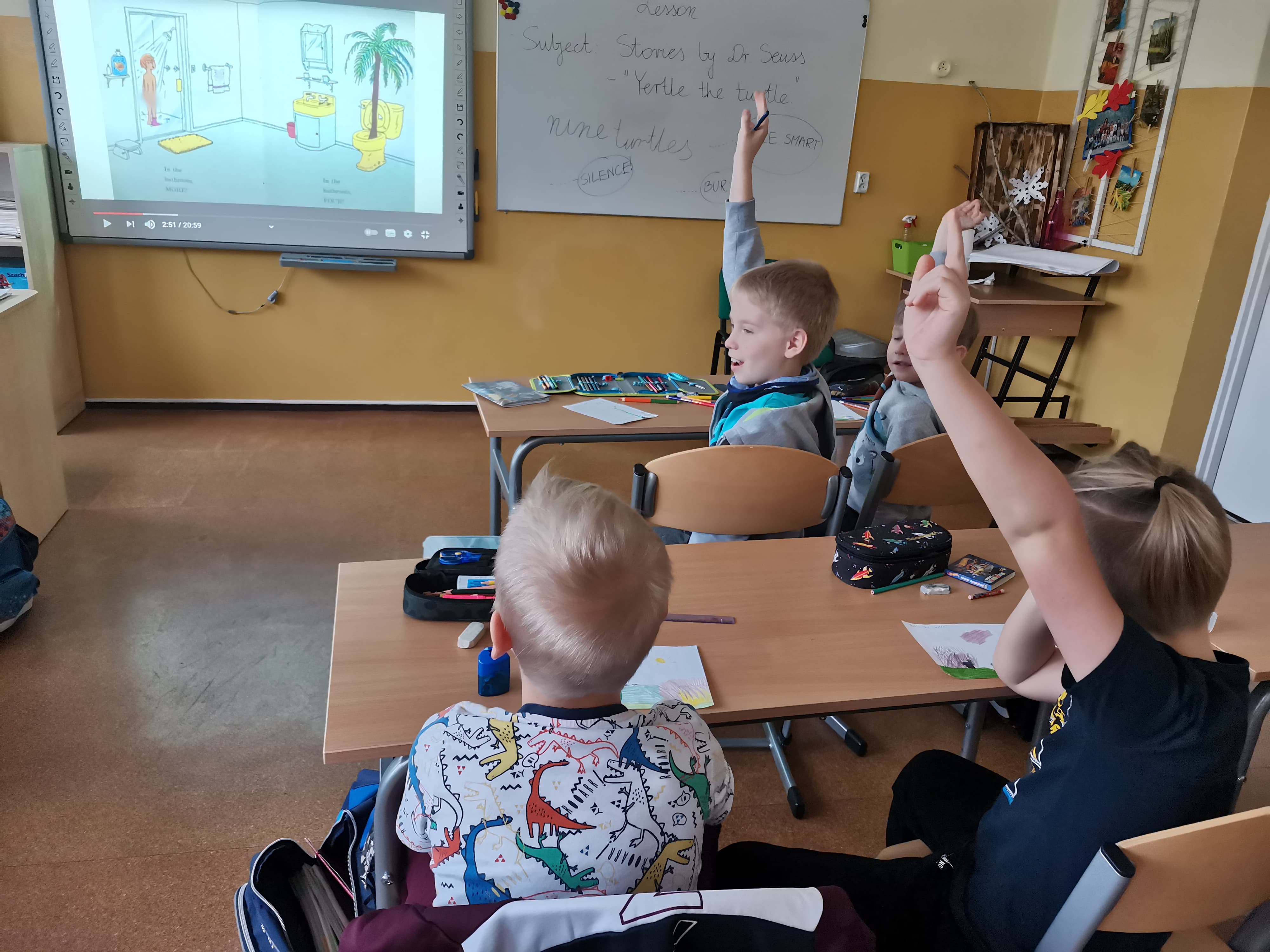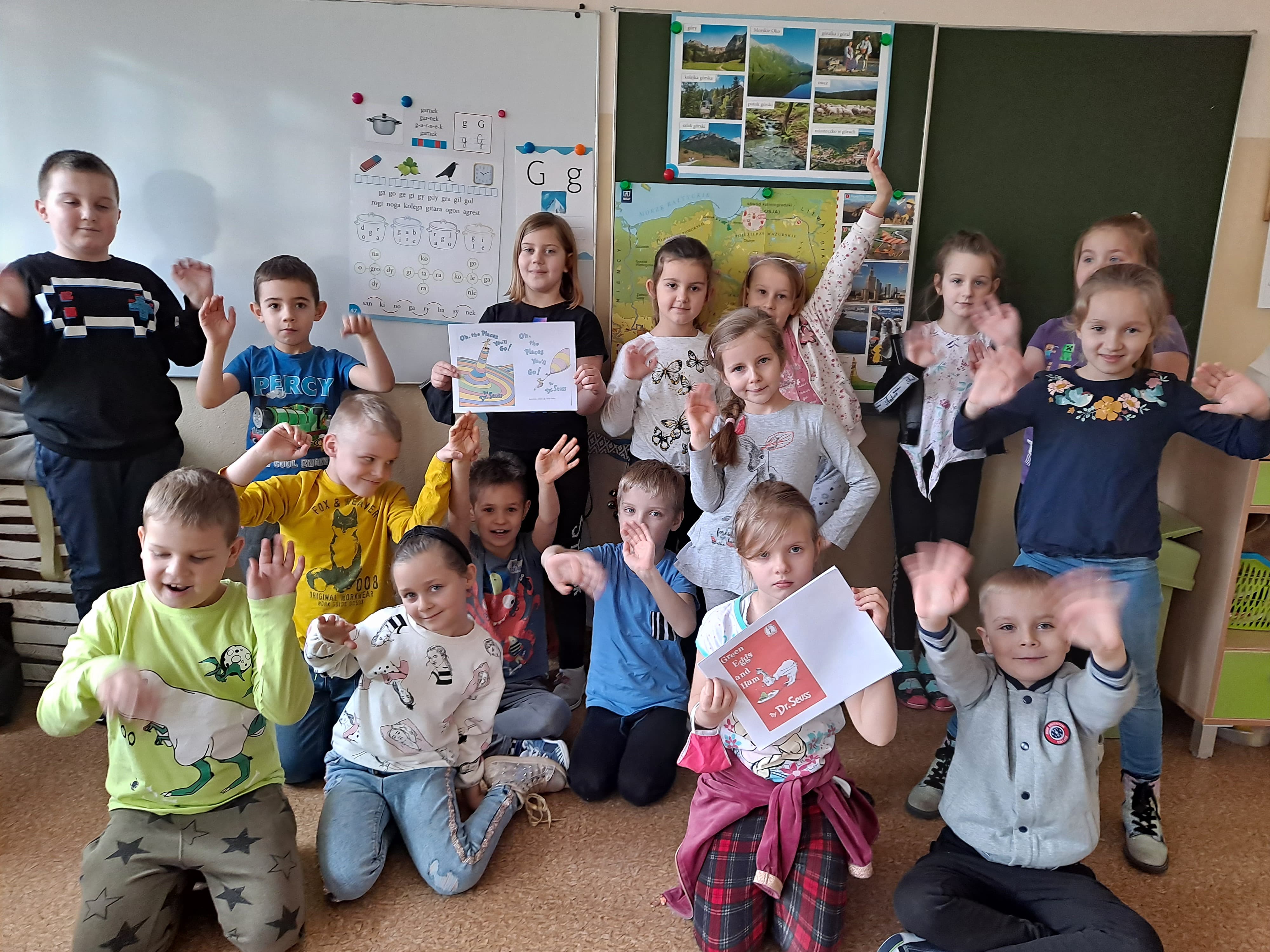 W czasie lekcji języka angielskiego czytaliśmy fragmenty bajek Dr. Seussa, oglądaliśmy ich ekranizacje, rozwiązywaliśmy krzyżówki i rebusy, ilustrowaliśmy obejrzane historie.