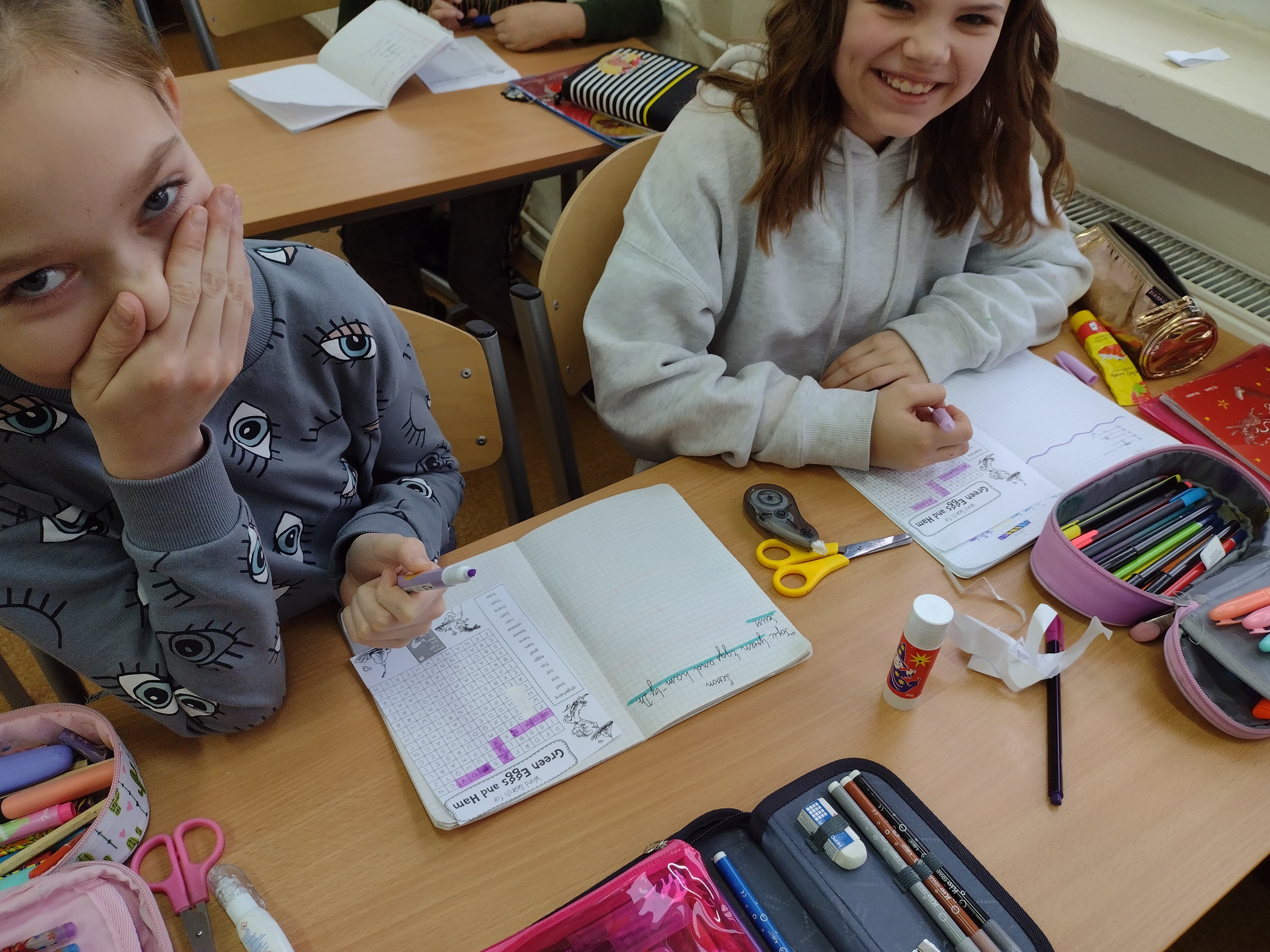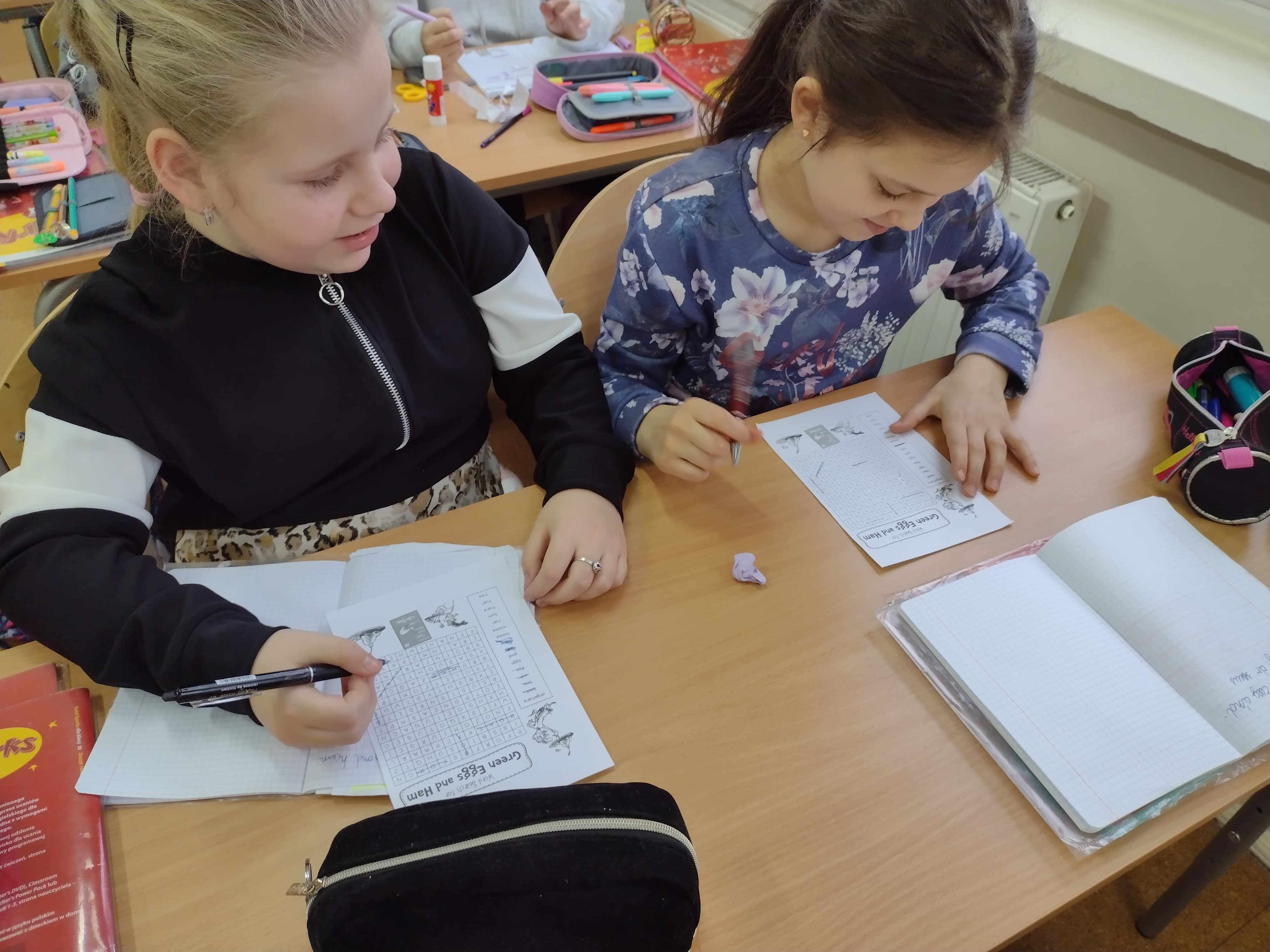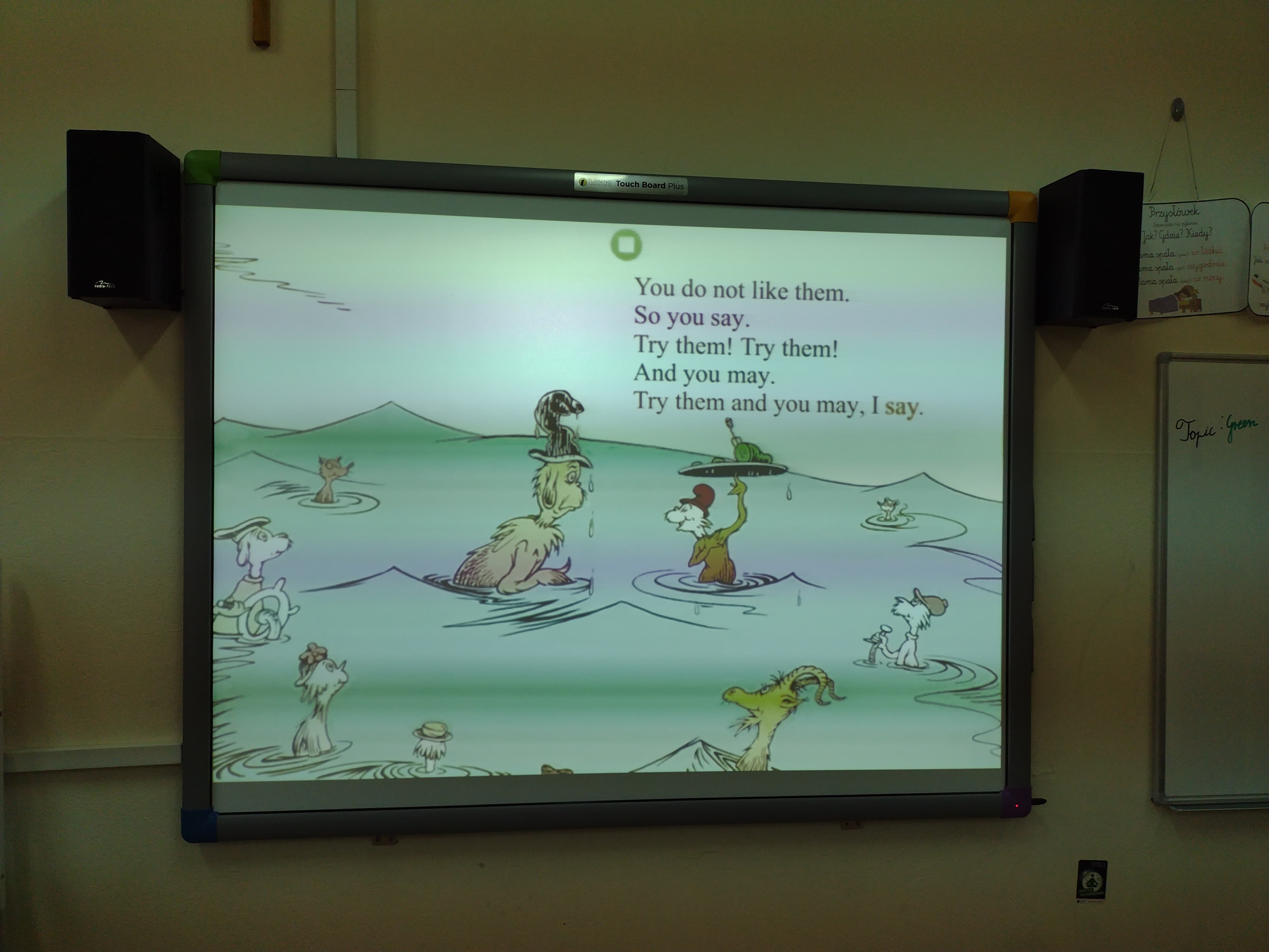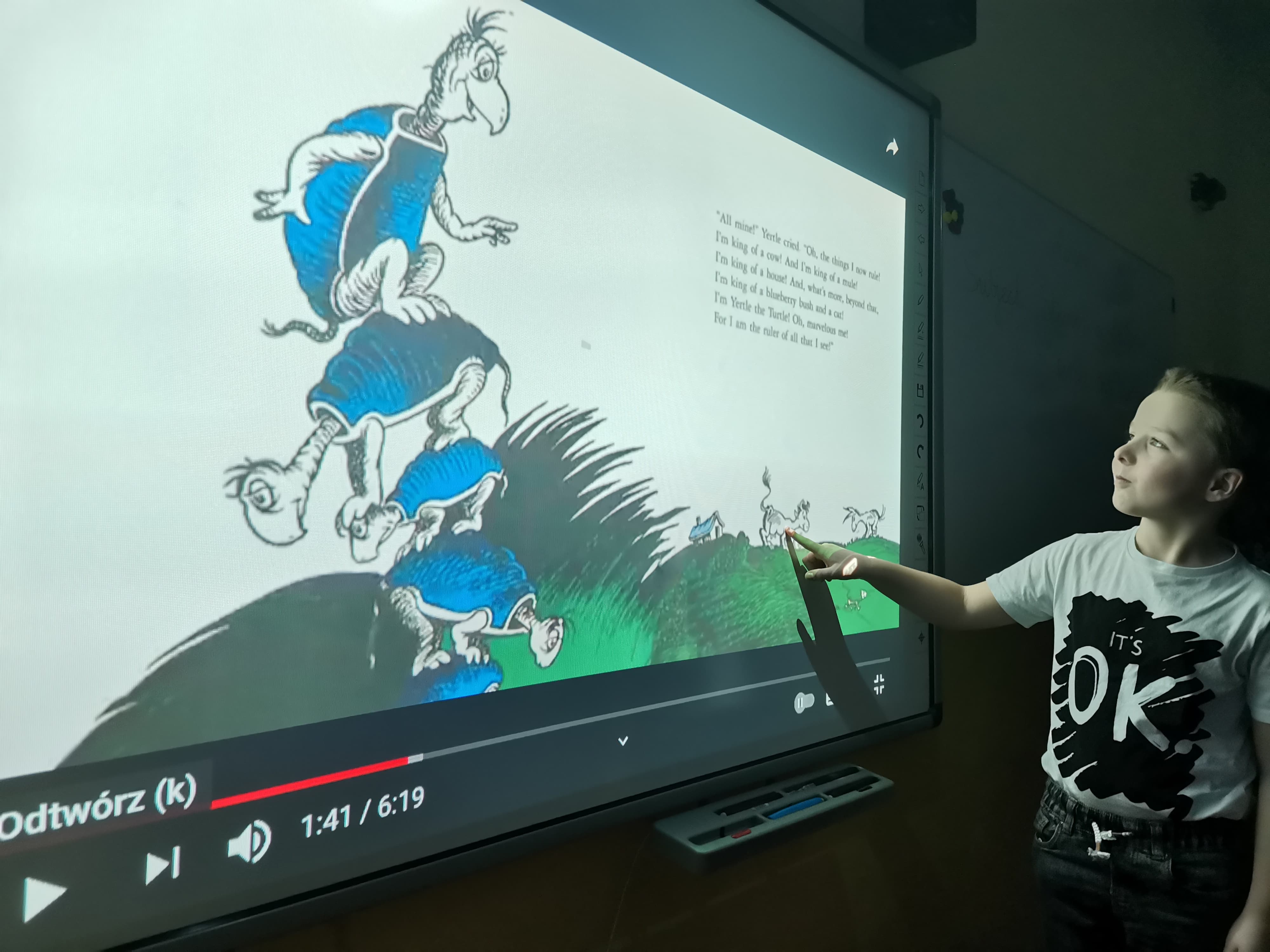 W czasie lekcji języka angielskiego czytaliśmy fragmenty bajek Dr. Seussa, oglądaliśmy ich ekranizacje, rozwiązywaliśmy krzyżówki i rebusy, ilustrowaliśmy obejrzane historie.