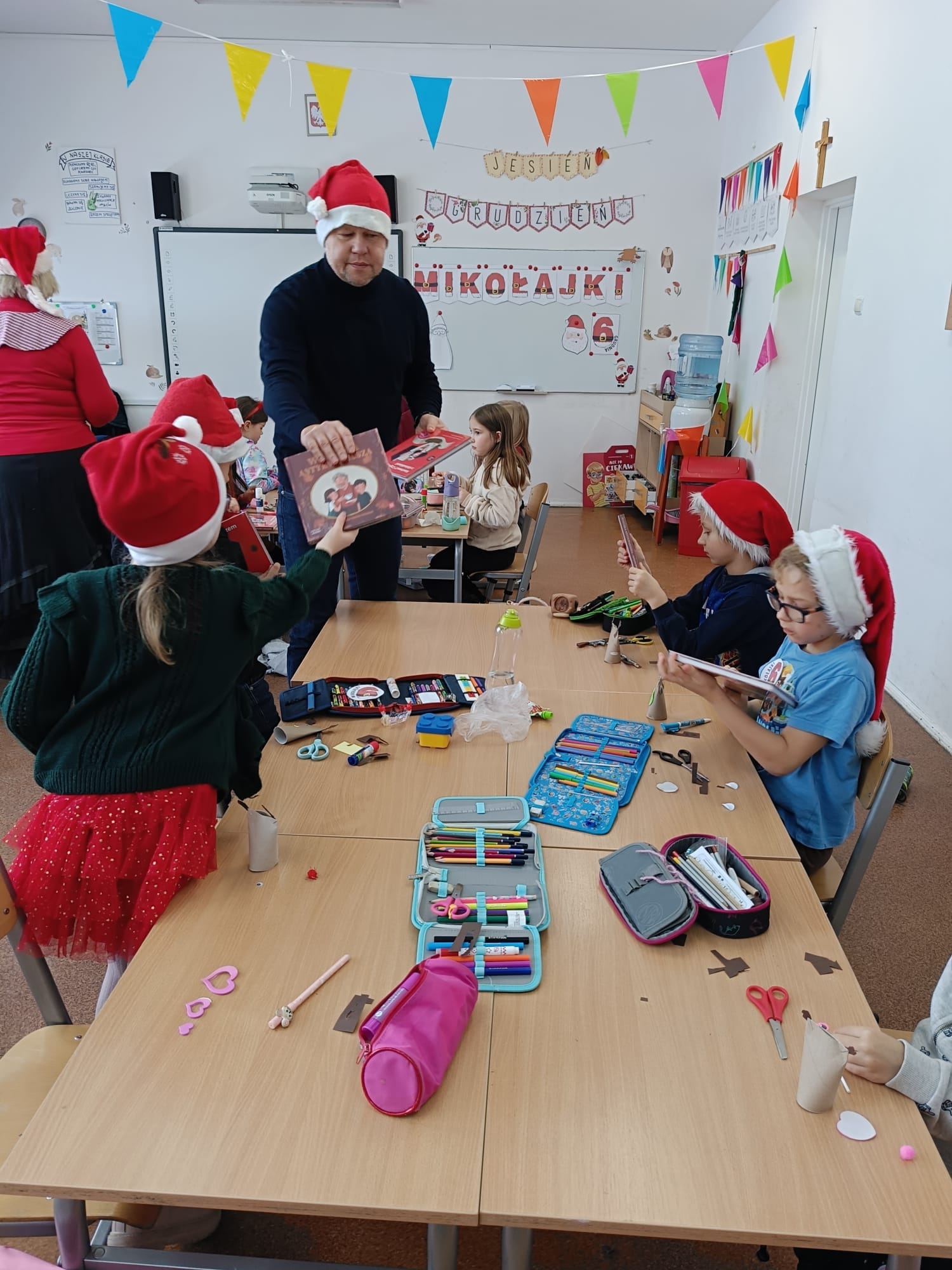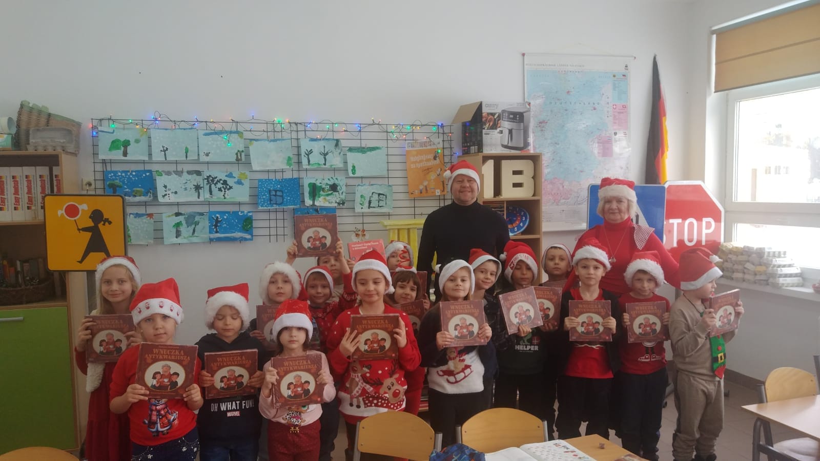 W środę 6 grudnia 2023 r. po raz kolejny zawitała do Siódemki edycja kampanii Instytutu Książki "Mała książka - wielki człowiek". Głównym celem akcji jest promocja czytelnictwa wśród dzieci w różnych grupach wiekowych. Jednym z jej elementów są działania na rzecz najmłodszych - tych, którzy dopiero zaczynają naukę w szkole podstawowej. Uczniowie klas pierwszych otrzymali Wyprawki Czytelnicze, na którą składają się: "Wnuczka antykwariusza" - książka autorstwa znanej i niezwykle cenionej pisarki Justyny Bednarek, z mistrzowskimi ilustracjami Emilii Dziubak oraz "Kochasz? Czytaj razem z dzieckiem!" - broszura, która jest poradnikiem dla rodziców i opiekunów, mówiącym o korzyściach wynikających ze wspólnego, rodzinnego czytania, a także zbiorem rekomendacji wartościowych książek przeznaczonych dla pierwszoklasistów. Mikołaj przybył do Siódemki, przynosząc radość i nowe książki dla każdego pierwszoklasisty: "Czytaj Książki - Będziesz Wielki."