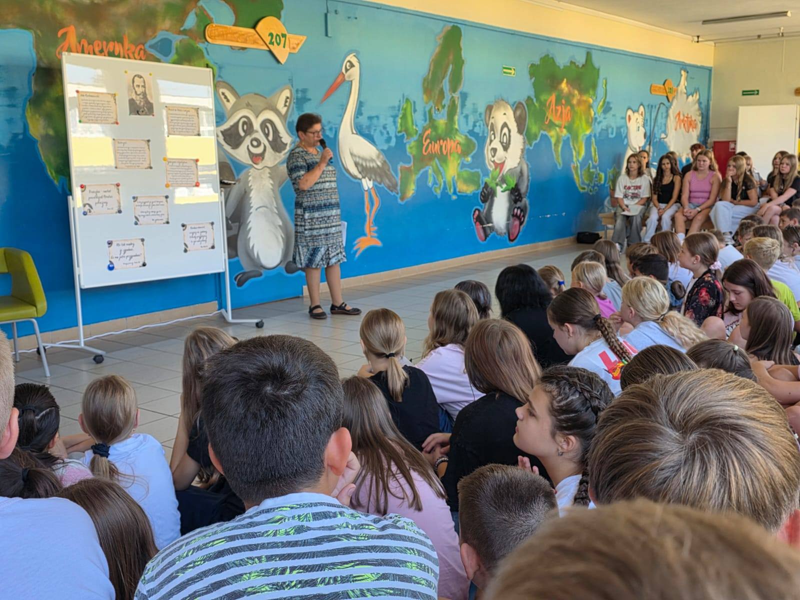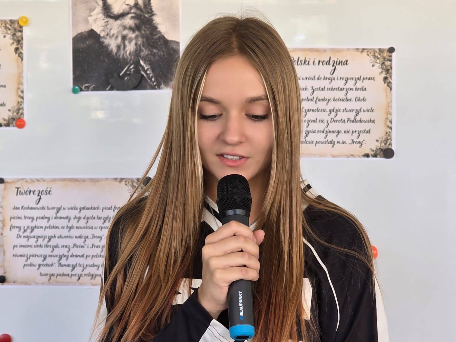 Nauczyciele i uczniowie naszej szkoły dołączyli do ogólnopolskiej społecznej akcji czytania utworów najwybitniejszych polskich poetów i pisarzy. Wrzesień 2025 r. to spotkanie z zawiłym, ale jakże mądrym poetyckim słowem mistrza Jana z Czarnolasu. Uśmiechnęliśmy się słuchając fraszek, uciekliśmy od miejskiego gwaru, słuchając słów pieśni "wsi spokojna, wsi wesoła", a serca nasze przepełnił smutek, gdy wsłuchaliśmy się we fragmenty trenów, ale i dostrzegliśmy ponadczasowe, humanistyczne wartości propagowane przez "ojca poezji polskiej" - zdrowie, czyste sumienie, przyjaźń, szacunek, patriotyzm. Na gazetkach szkolnych pojawiły się pięknie zapisane cytaty z utworów Jana Kochanowskiego, które, mimo upływu wieków, nie straciły aktualności. Spotkania z tą niepowtarzalną literaturą, to była mądra lekcja języka polskiego.