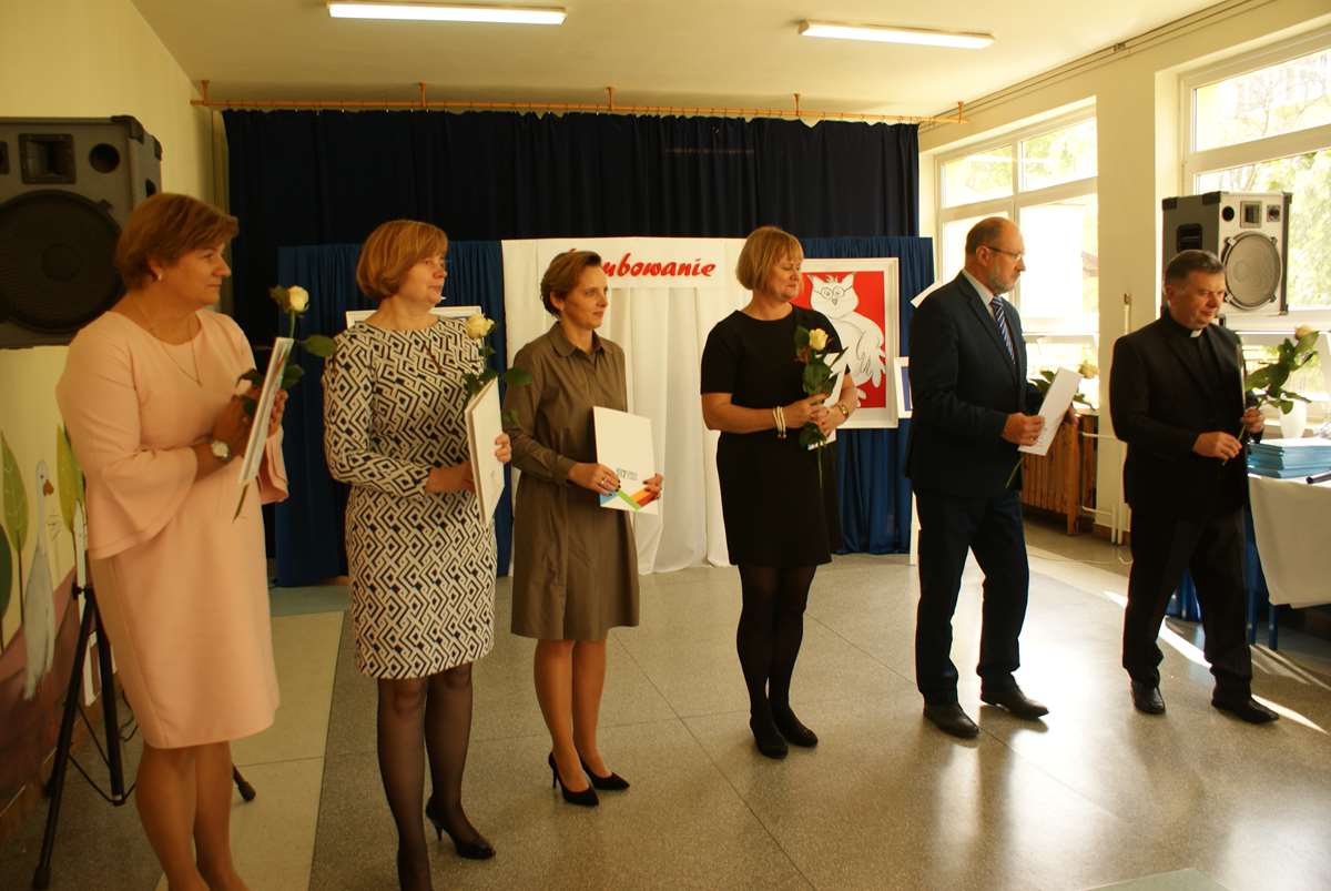 Uroczystość uświetnili wspaniali goście – Ksiądz Prałat Józef Wysocki – proboszcz Parafii św. Wojciecha, Pan Marek Zawadzki – Sekretarz Miasta Konina, Pani Ilona Hamela – Dyrektor Przedszkola nr 5, Pani Alina Zimna - Dyrektor Przedszkola nr 11, Pani Małgorzata Kapera pełniąca obowiązki Dyrektora Przedszkola nr 12 oraz Aneta Zarębska - Dyrektor Przedszkola nr 15. Swoją obecnością dali wyraz, jak wielkie to wydarzenie dla uczniów klas pierwszych i całej społeczności szkolnej.