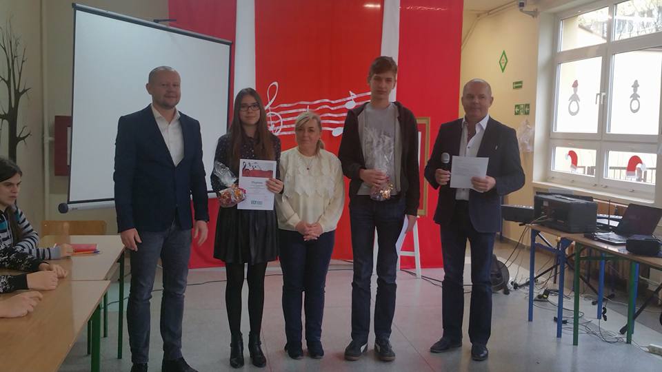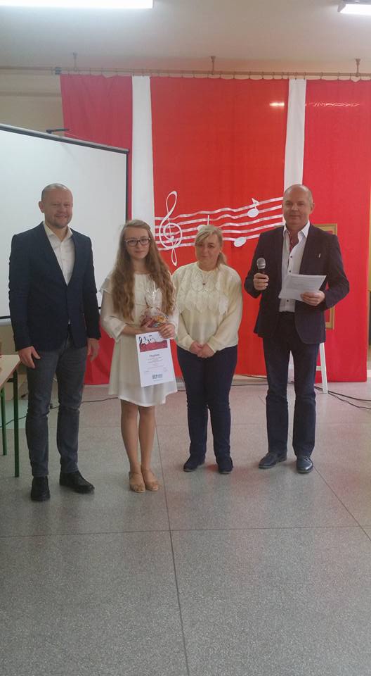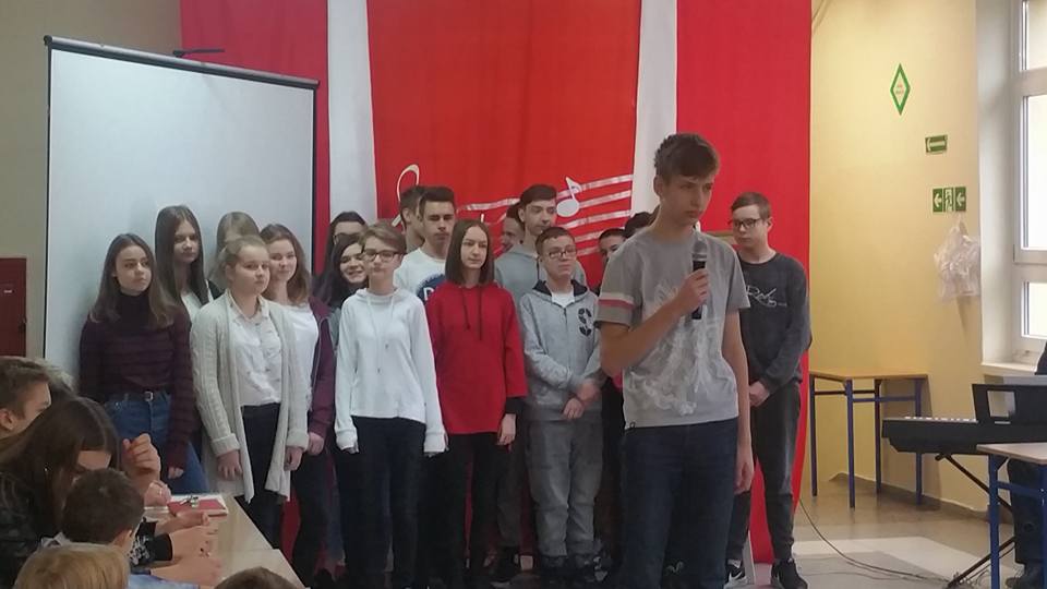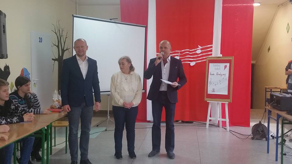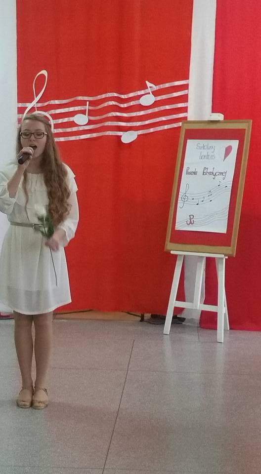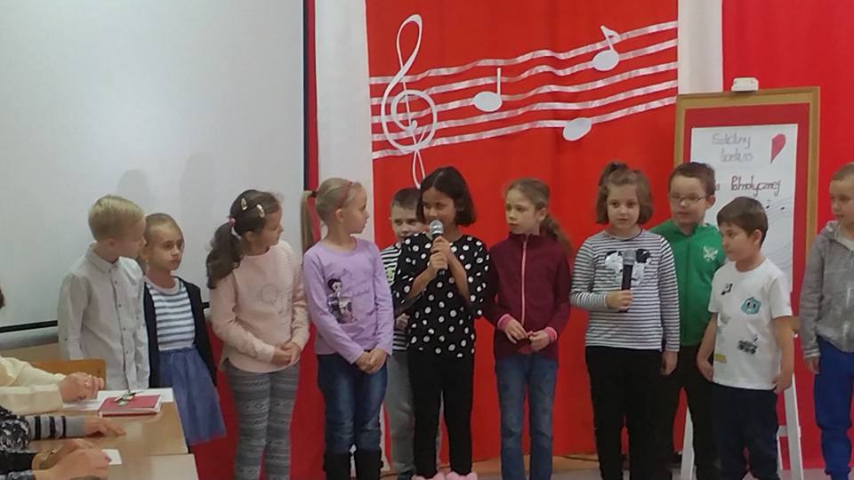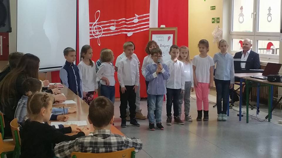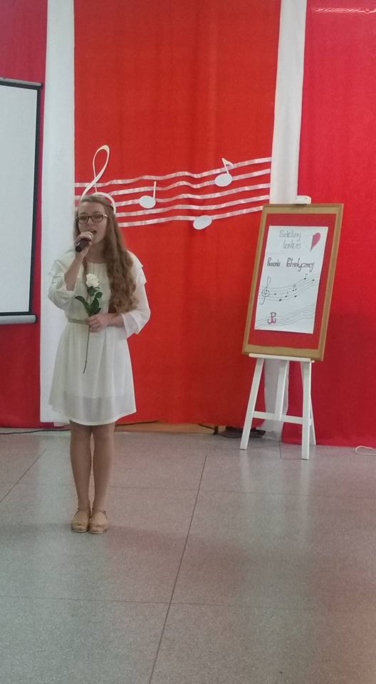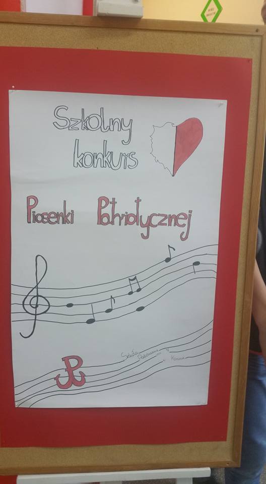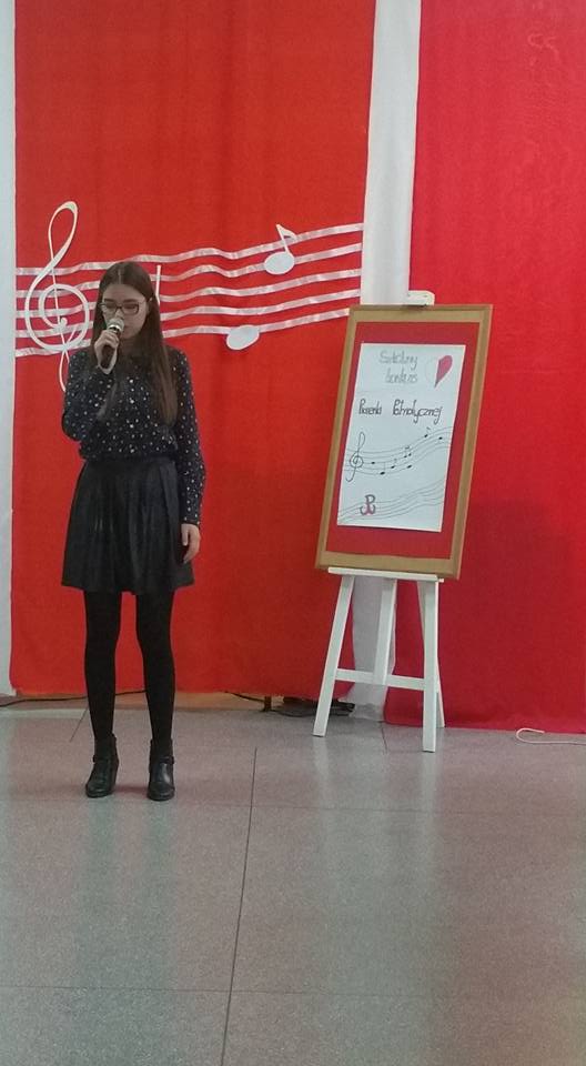 7 listopada 2017 roku w naszej szkole odbył się Szkolny Konkurs Polskiej Pieśni Patriotycznej. Uczestnicy występowali w dwóch kategoriach - szkoła podstawowa i gimnazjum. Zaprezentowali bogaty i ciekawy repertuar, w którym przeważały pieśni legionowe, pieśni, które odwoływały się do najważniejszego wydarzenia z naszej historii – odzyskania Niepodległości. Widownia miała okazję posłuchać również wykonanie „Kolędy warszawskiej”, która nawiązuje do realiów życia Polaków podczas hitlerowskiej okupacji.