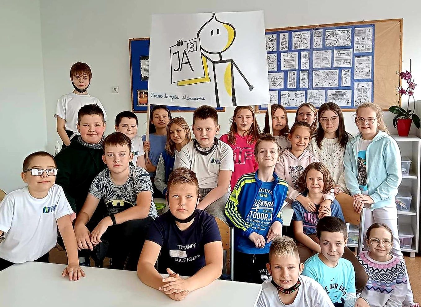 - Uczniowie każdej klasy wykonali plakaty przedstawiające, wylosowane wcześniej, prawo dziecka i zaprezentowali je społeczności szkolnej.