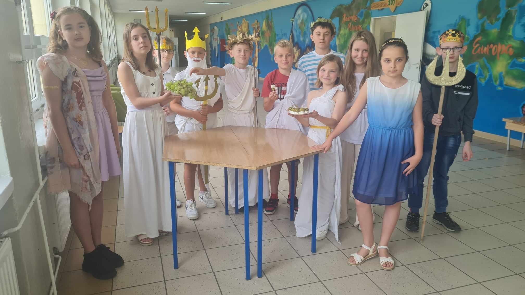 W piątek 7 czerwca, w samym sercu szkoły odbył się niezwykły happening pod nazwą „Uczta na Olimpie”, który na chwilę przeniósł uczestników w magiczny świat starożytnej Grecji. Wydarzenie to przyciągnęło entuzjastów sztuki, historii i dobrej zabawy. Nauczyciele, uczniowie, wystylizowani na greckich bogów i postacie mitologiczne, pląsali w rytm dźwięków liry i kosztowali winogrona, sery, oliwki…
