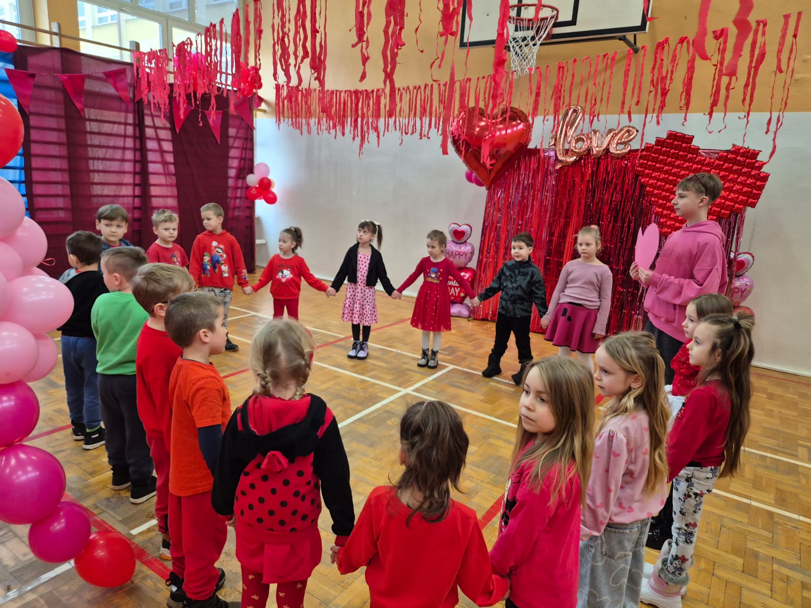 Było to wyjątkowe spotkanie, które połączyło najmłodszych we wspólnej zabawie, tańcu i integracji. Uczniowie oraz przedszkolaki stworzyli niezwykle ciepłą, pełną życzliwości walentynkową atmosferę.