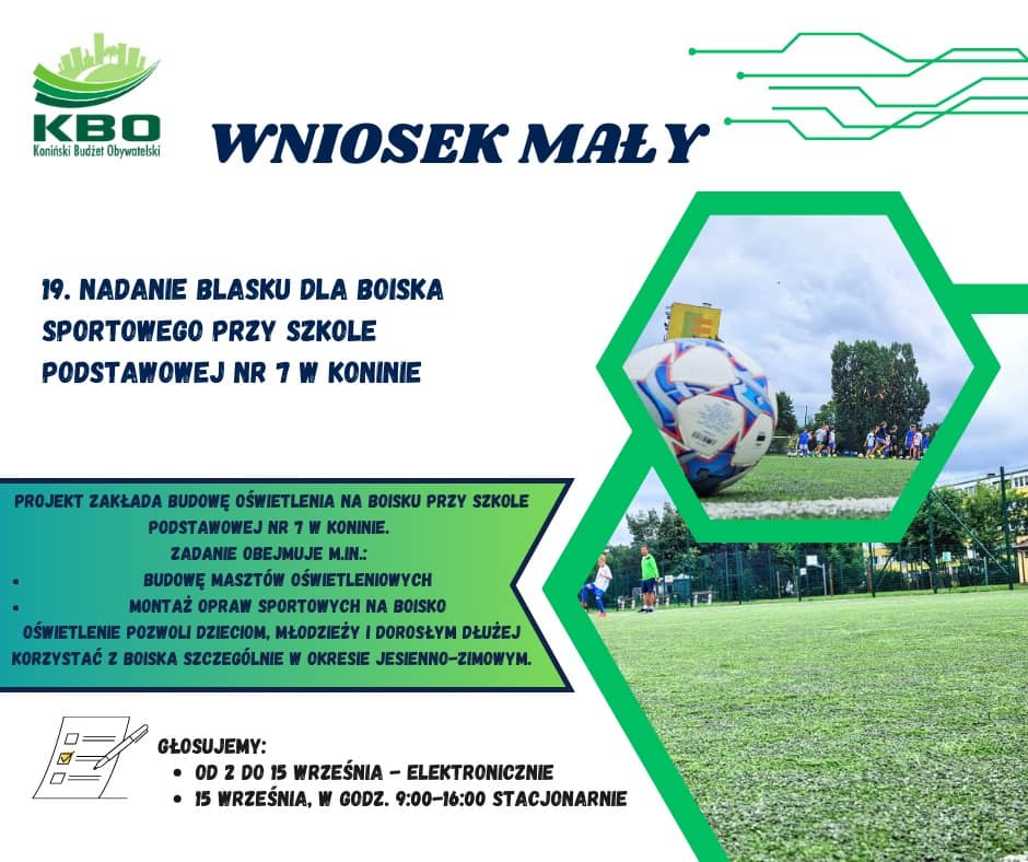 19. Nadanie blasku boisku sportowemu przy Szkole Podstawowej nr 7 w Koninie.